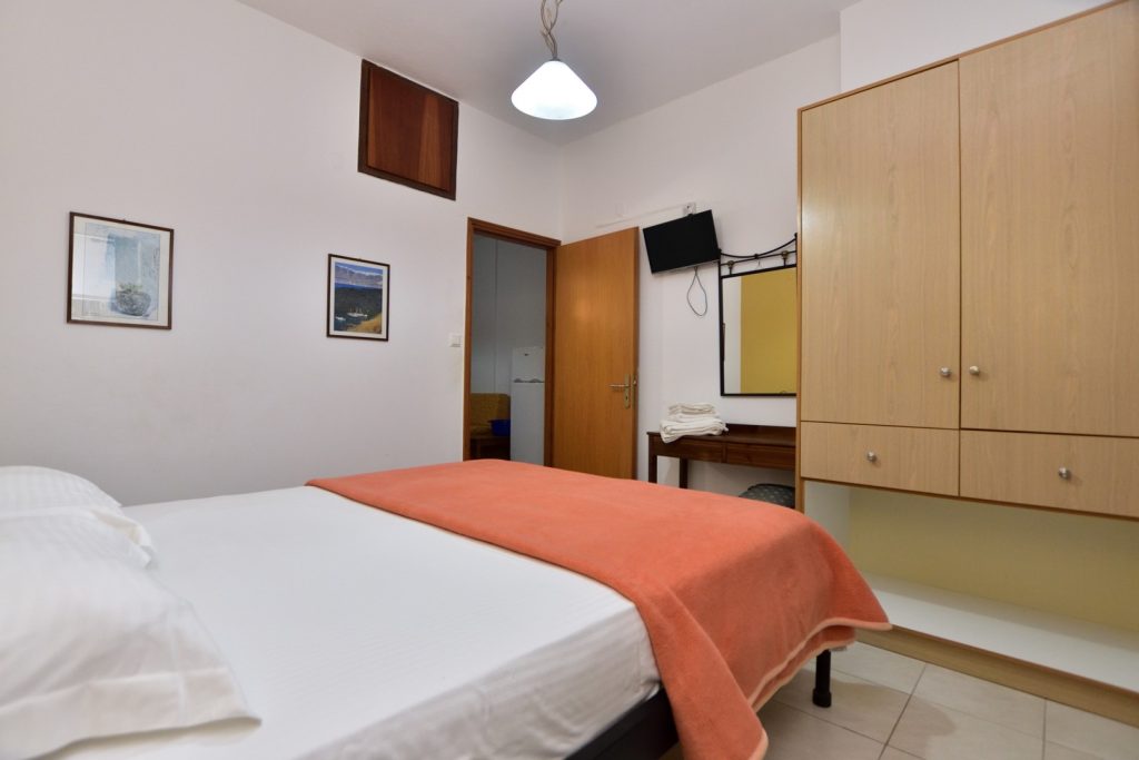 The apartment is very comfortable for families of two or three persons. It features one separate bedroom with a double bed and air conditioning and a living/kitchen room with one extra sofa bed. There are many kitchen facilities ( oven, fridge, and coffee machine ), a private bathroom, and two sunny balconies.